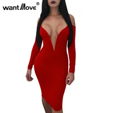 AliExpress.com Product - Wantmove 2018 Spring Sexy Fashion Women Midi Dress Deep V Neck Off Shoulder Long Sleeve Club Bodycon Dress JZ261