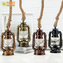 Vintage Kerosene Pendant Lamp With Free Bulb E27 Hemp Rope Hanging Lamp for Home/Bedroom/Living room Industrial Pendant Lights